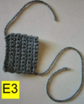 As an alternate, you can use a fuzzy yarn to SC around edge as shown in E5 photo below for fun.