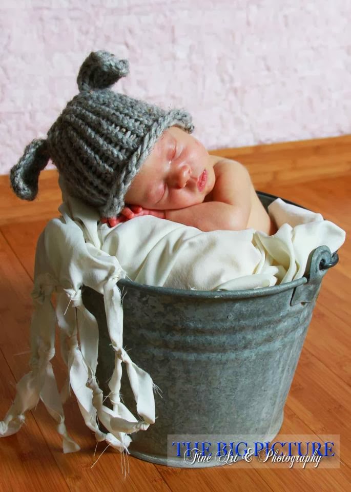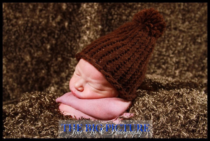 Crochet Newborn Infant Striped long tail elf hat with Supersize pompom
