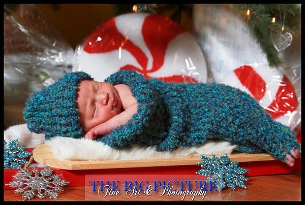 Newborn Infant Crochet Christmas hat with supersize pompoms